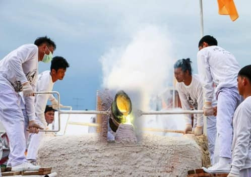 วันที่ 4 สิงหาคม 2567 นางสาวสุวรรณจันทร์ แก่งสันเทียะ สหกรณ์จังหวัดสมุทรสงคราม มอบหมายให้ นายกฤษฎา สู่เจริญ ผู้อำนวยการกลุ่มส่งเสริมและพัฒนาการบริหารการจัดการสหกรณ์ พร้อมด้วย นางสาวน้ำอ้อย ทองนพคุณ นักวิชาการสหกรณ์ปฏิบัติการ และนางสาวอมรรัตน์ รอดเกิด นักวิชาการสหกรณ์ กลุ่มส่งเสริมและพัฒนาการบริหารการจัดการสหกรณ์ สำนักงานสหกรณ์จังหวัดสมุทรสงคราม ร่วมพิธีเททองหล่อองค์ “หลวงพ่อบ้านแหลม” องค์จำลองใหญ่ที่สุดในโลก ขนาดความสูง 12.30 เมตร วาระที่ 3 (ส่วนพระเพลา พระชงค์ พระบาท ฐาน และพระหทัย) ฉลองครบรอบ 123 ปี จังหวัดสมุทรสงคราม เพื่อความเป็นสิริมงคลแก่ประชาชนชาวจังหวัดสมุทรสงคราม โดยมีนายศิริศักดิ์ ศิริมังคะลา ผู้ว่าราชการจังหวัดสมุทรสงคราม เป็นประธานฝ่ายฆราวาส ณ มณฑลพิธีลานอเนกประสงค์หน้าวัดเพชรสมุทรวรวิหาร ตำบลแม่กลอง อำเภอเมือง จังหวัดสมุทรสงคราม